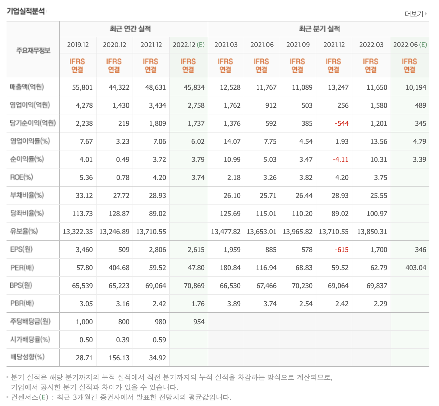 영업이익이나 당기 순이익도 마찬가지, ROE도 조금은 힘들어 보인다.