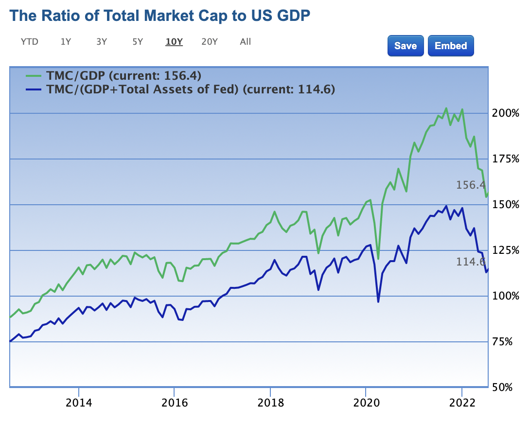 Buffett Indicator: The percent of total market cap relative to Gross National Product?